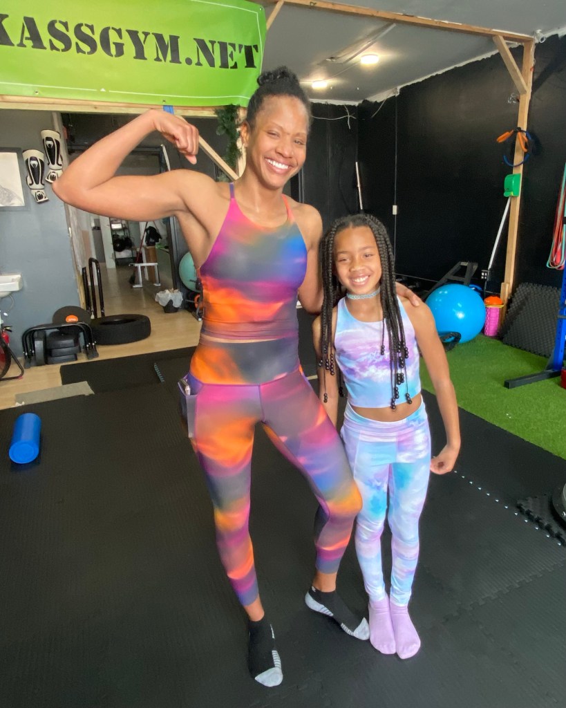 My eight year old is one of the reasons I go hard when taking kickboxing classes, strength training classes or even going for a run. She’ll often ask to come with me when I’m working out, which makes me feel good.